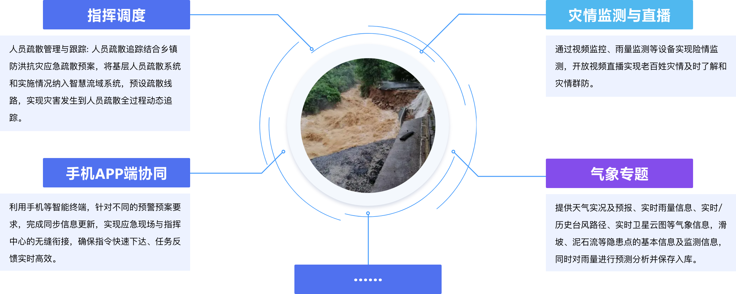 以云計算和云存儲為基礎,山洪災害業務數據資源池為核心,依托智能視覺中臺和應用支撐中臺,聚焦山洪智慧應用業務共性剝離和微服務建設,綜合提升山洪災害預警業務應用、模型計算和“算法+數據+算力”云服務能力,在預警模式和技術方法上進行升級和規范,實現水文氣象信息共享、省市縣分級應用、縣級監測預報預警信息發送和自動水雨情站點運行監控等核心功能,加強各級各部門之間的信息共享和業務協同能力,及時掌握和發布山洪災害實時監測、預警信息,提升綜合防災減災能力和山洪災害防御科學管理水平。 適用對象:地方政府、水文部門、氣象部門、水務部門。 解決的問題:精準監測;可監可控;科學決策。 應用的價值:平臺提供多層次信息化展示服務;對監測數據及預案關聯,自動分析預警響應等級及工作部署;定制不同信息產品,滿足防汛山洪災害綜合業務管理需求。
