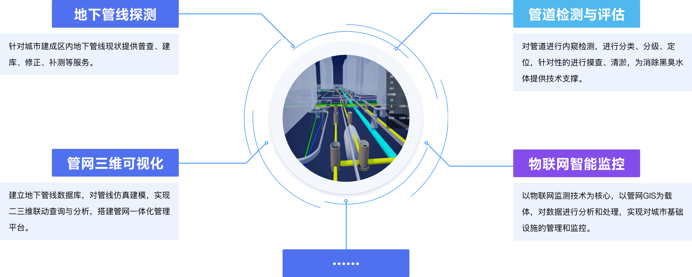 城市地下管網是城市最基本的保障設施,直接影響社會經濟發展和人民生活的安定,在城市發展和安全運行中發揮著至關重要的作用。隨著城市的迅速發展,城市地下管網越來越龐大和復雜,對管網的運行和養護管理的要求也日益提高。但是,管網的實際運行和養護工作中缺乏掌握其真實運行狀況的手段,也難以評估日常養護管理的效果,遇到洪澇等緊急情況也無法依據管網內部實際狀況制定相應的應急措施。因此,建立地下管網監管信息化平臺十分重要。 適用對象:相關政府監管部門。 解決的問題:解決管網信息查詢不便解決;管網數據交換共享不便;提升管網決策效率和水平;解決管網更新現狀進度不明;管網運行安全管理效率和水平。 應用的價值:實時掌握管網運行狀況,便于管理者掌握管內實際狀況及正確的部署緊急情況下的應急措施,提高排水管網的運行管理水平,提升政府服務能力和民眾滿意度。