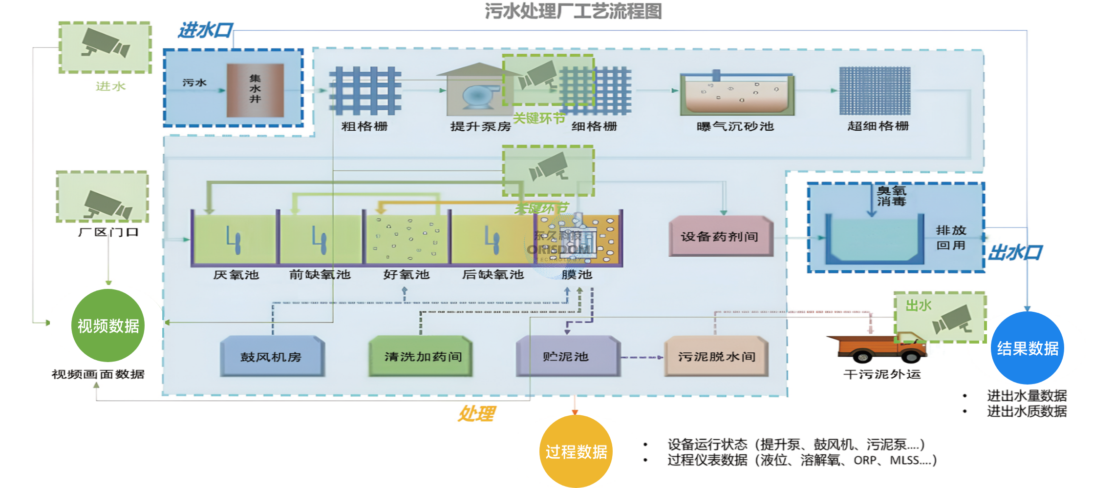 現目前中小型污水處理廠較多,分布位置較為分散,較多采用人工運維管理方式;所采用的工藝不盡相同,大部分污水處理廠因管網建設不完善,導致進水濃度降低、雨污混流、海水倒灌,進而間接影響整體運行。 本方案結合實際情況,采集污水處理廠(站)水質水量、工藝工況、視頻監控等監管數據,監管排水的水質水量工況、作業等環保及安全情況,與物聯網設備的無縫集成,實時、動態在線監測監控污水處理廠、污水處理站的情況,進行異常告警,建立動態、可視化、長效的監管機制。 適用對象:相關監管部門、各類污水處理廠。 解決的問題:提高工作效率和便利性;管理標準化,操作效率化;大數據統計分析,優化管理和運營;數據匯總收集,監管科學真實。 應用的價值:提升污水處理運營管理智能化水平,運維監管一體化。將工作環節實現與平臺銜接,解決以往系統建設后很難落地使用的問題。